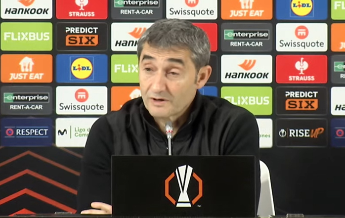 El entrenador del Athletic Club, Ernesto Valverde, ha atendido a los medios de comunicación este jueves por la tarde, durante la rueda de prensa posterior al partido contra el Viktoria Plzen, correspondiente a la jornada 8 de la UEFA Europa League, que se disputó en el Estadio de San Mamés.