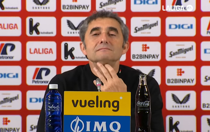 El entrenador del Athletic Club, Ernesto Valverde, ha atendido a los medios de comunicación este domingo por la tarde, durante la rueda de prensa posterior al partido contra el RCD Mallorca, correspondiente a la jornada 27 de Liga, que se disputó en el Estadio de San Mamés.