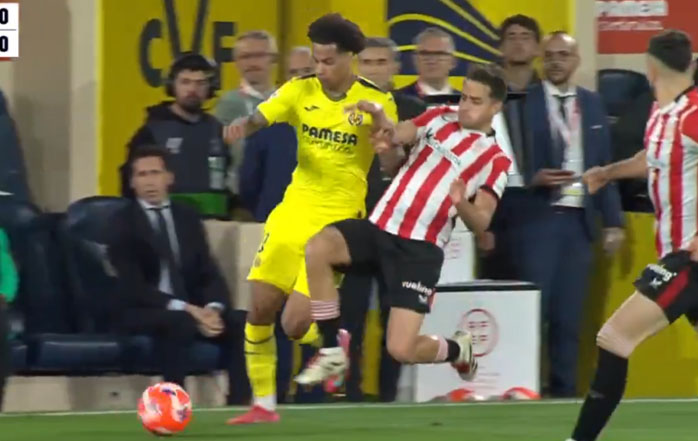 El extremo canadiense del Villarreal, Tajon Buchanan, se ha visto obligado a pedir el cambio en el minuto 56 del partido de este domingo por la tarde contra el Athletic, en el Estadio de la Cerámica, debido a una dura entrada que le provocó un esguince de tobillo. El árbitro no pitó ni falta, pero el jugador tuvo que abandonar el campo cojeando, siendo sustituido por Yeremi Pino.