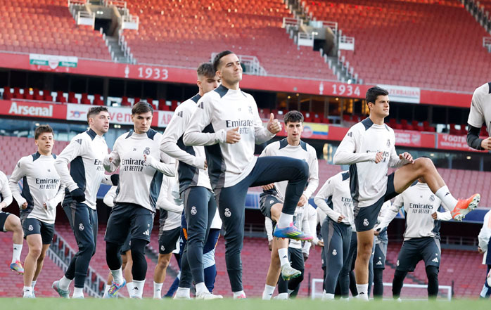 El técnico del conjunto blanco, Carlo Ancelotti, ha dirigido una sesión en la que se han ejercitado todos los convocados, incluyendo a Thibaut Courtois, ya recuperado de los problemas físicos que le atormentaban la semana pasada. En Madrid se han quedado los lesionados Dani Ceballos, Ferland Mendy, Andriy Lunin, Éder Militão y Dani Carvajal, quienes continúan con sus respectivos procesos de recuperación y Tchouaméni, sancionado. El equipo se trasladará a Barcelona este martes para concentrarse antes del encuentro.
