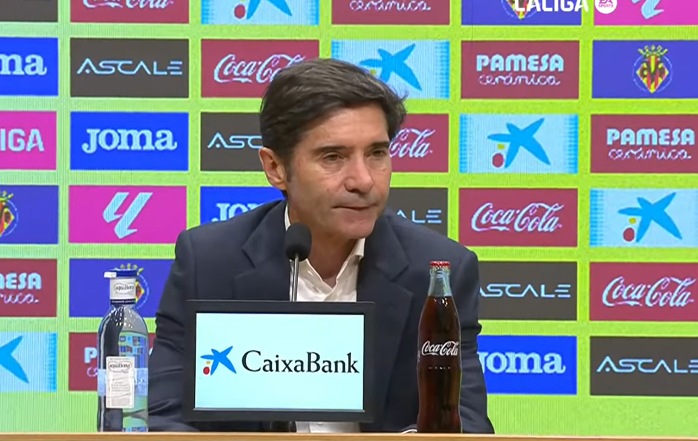 "Venía comentando que en estos últimos cuatro partidos hemos perdido uno y empatado tres. Y bueno, yo creo que la gota que colmaba era yo. Pero bueno, yo sí estoy orgullosísimo del trabajo. Creo que estamos francamente bien, el equipo está muy bien. Ha hecho un partidazo, ha tenido ocasiones clarísimas, ha acelerado. Es una pena los dos goles que encajamos, que también, sobre todo en el primero, fue un componente de mala fortuna, porque el remate no tenía ni peligro. Hay un brazo alto, cuando no hay ninguna intención de jugar con el brazo. Pero bueno, esto es así. Y luego, el equipo ha hecho todo para ganar, ha hecho más que el Villarreal hoy. Juegan dos equipos, uno muy superior al otro, pero luego son muy vulnerables dentro de todo lo que nosotros no podemos dominar".
