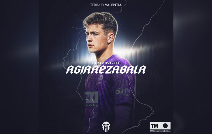 El Valencia CF ha alcanzado un acuerdo con el Athletic Club para la incorporación de Julen Agirrezabala. El guardameta guipuzcoano (26/12/2000) llega cedido por la presente temporada a cambio de una cantidad cercana a los 600.000 y el club dispondrá de una opción de compra no obligatoria fijada en 12 millones de euros al término de la misma.