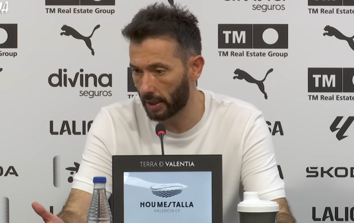 "Buenas noches a todos. La valoración para mí se analiza en el juego. En los primeros 20-25 minutos nos ha costado mucho entender el partido y adaptarnos. No hemos estado lo precisos que podemos estar y que normalmente estamos. A partir de ahí el equipo ha ido creciendo y, si valoro el resultado, creo que ha sido justo porque ha habido alternativas de ocasiones para los dos equipos. La pena ha sido que una vez nos hemos puesto por delante no hemos podido mantener esa ventaja. Pero el equipo ha insistido y hasta el final los jugadores se han entregado, se han vaciado para tratar de conseguir un resultado que no hemos conseguido. Porque cuando uno ve Mestalla con más de 45.000 personas, la pena de no ganar aumenta, porque queríamos dar las gracias consiguiendo una victoria."