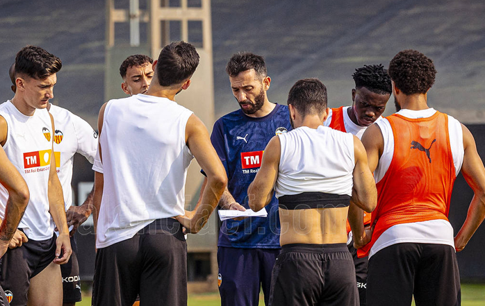 El técnico blanquinegro, Carlos Corberán, ha dirigido una sesión en la que Diego López se ha reincorporado al grupo tras perderse el entrenamiento del miércoles. Por su parte, Canós y Guillamón continúan ejercitándose al margen mientras se resuelve su futuro, mientras que Alberto Marí sigue trabajando en su recuperación. En el caso de Thierry, se ha ejercitado junto al resto de compañeros, pendiente aún del alta médica. El resto de la plantilla ha llevado a cabo un trabajo normal sobre el césped en un ambiente de máxima concentración.