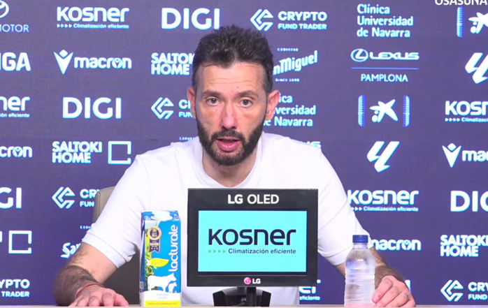 "No estoy de acuerdo contigo, mi cabreo no tiene que ver con que no he visto al equipo hacer lo que ha trabajado durante la semana. El inicio del partido, los tres o cuatro primeros minutos con la presión de ellos, me ha gustado del equipo. Luego es verdad que hemos entrado en un momento donde hemos permitido que Osasuna tuviera el balón con demasiada facilidad y, cuando tú defiendes en un campo como este, con un equipo con un estilo como este, con cuatro, sin ser agresivos, sabes que vas a conceder centros. En el primer centro que han tenido han conseguido adelantarse y luego, una vez hemos concedido, que es difícil de afrontar o frustrante, el único gol que hemos recibido hoy ha sido con once, y no luego cuando hemos perdido un jugador. Claramente el partido queda marcado por esa acción, por esa expulsión, por ese accidente o error de José. A partir de ahí he visto un equipo que ha sabido sufrir, que se ha entregado, que se ha vaciado, y eso es lo que trabajamos cada día: que el equipo se entregue, que se vacíe y que hasta el final luche, y yo eso lo he visto en el campo."