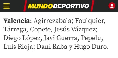 En cuanto al once titular, todo apunta a que Jesús Vázquez ocupará el lateral izquierdo por la baja del sancionado Gayà y que podría haber además algunas modificaciones tácticas en defensa y centro del campo, buscando más intensidad con Diakhaby o Santamaría. Arriba, Duro y Danjuma se disputan la plaza.