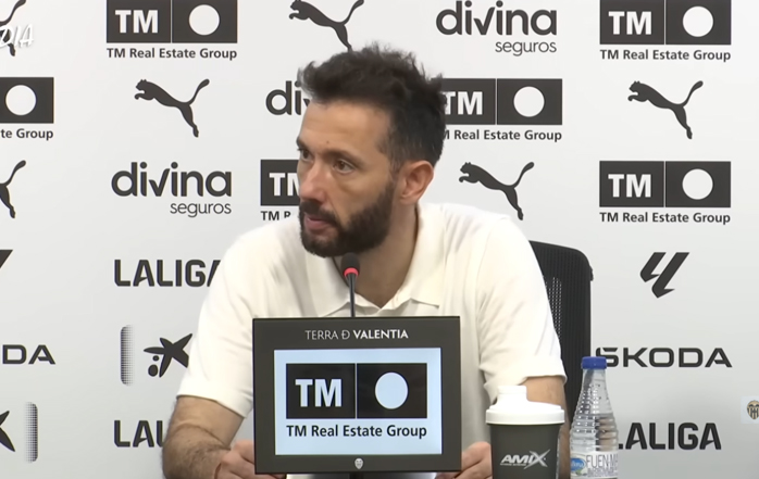 "Buenas a todos, me alegro que estéis afónicos, siempre buena noticia. Lo primero, satisfecho porque hoy hemos podido brindar a la afición una victoria y como dije en la rueda de prensa previa al partido, no hay nada que este grupo desee más que dar las gracias de la forma que lo hemos hecho, trabajando, esforzándonos y consiguiendo tres puntos porque el apoyo que tenemos de la afición, más de 45.000 personas en el estadio, es una barbaridad. En los momentos complicados no han parado de empujar al equipo y genera mucha satisfacción en el vestuario poder darle la victoria a la afición por lo mucho que nos apoyan. En cuanto al partido o en cuanto a la plantilla, es necesario para ser competitivo tener opciones. Jugadores que tienen nivel para ser titular empiezan y jugadores que tienen nivel para ser titular están en el banquillo porque eso nos hace ser competitivos durante todos los minutos de un partido y para mí tan importantes son los que empiezan el partido como los que terminan, porque cada minuto de un partido es decisivo y cada momento de un partido se te puede ir o puedes conseguir un partido. Por eso es importante que mantengamos el grupo fuerte mentalmente. Como comentaba un compañero en la rueda de prensa previa, el interés colectivo siempre tiene que estar por encima de cualquier aspecto individual para que así el Valencia gane como equipo, teniendo más posibilidades en el banquillo."