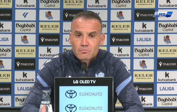 "Estoy tranquilo. Creo que así como el día de Valencia reconozco que era el primer día y que la foto era un poquito diferente, creo que ahora el equipo me deja tranquilo. Creo que estamos trabajando bien entre semana, que no ha llegado esa victoria pero confío en que pueda ser mañana. Estoy muy positivo con respecto a lo que podemos encontrar mañana, como dices, Anoeta empujando, con nuestro equipo intentando ser protagonista y sobre todo dándole a la gente lo que quiere, lo que necesita, y ojalá nos pueda llegar para asumir esa primera victoria que nos ponga en el camino. Yo creo que siempre esa primera victoria es como que te pone en marcha. Entonces nos está costando, es Real, no hemos sido capaces en estas primeras tres jornadas pero ojalá que mañana lo podamos hacer."