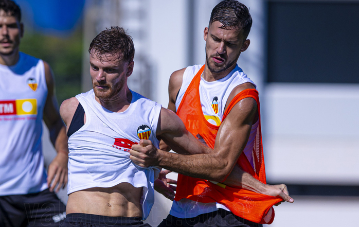 Carlos Corberán ha sorprendido en la última sesión de trabajo antes del partido frente al Barcelona introduciendo cambios significativos en el once que había probado ayer. El técnico, que en principio había apostado por un sistema de tres centrales, ha modificado su planteamiento este sábado en busca de mayor solidez defensiva y equilibrio en el bloque. La novedad principal ha sido la presencia de Copete, que se perfila como titular en una zaga remodelada para la visita al Estadi Johan Cruyff.