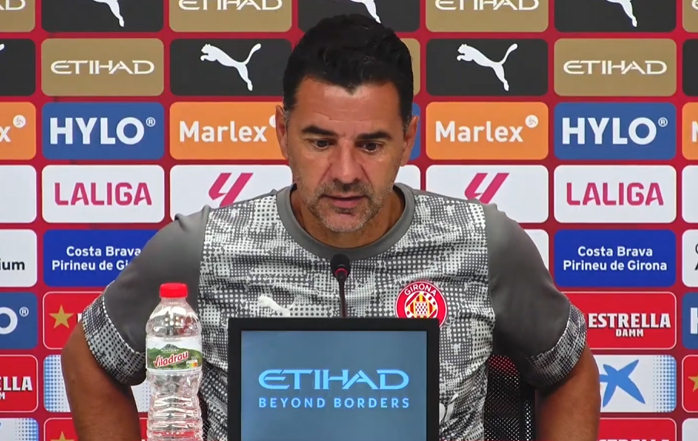 "Yo nunca he visto un Girona al que todo el mundo respete por jugar de una manera u otra. Siempre he visto a un rival que busca hacernos daño, cada partido, ganemos o perdamos. No he visto esa falta de respeto. Yo no miro al rival por lo que es o por lo que ha hecho, sino por las situaciones de juego. Sé cómo afrontar cada partido contra cualquier rival. No miro si es el Real Madrid, el Espanyol o el Betis. Miro cómo hacerle daño en ataque y en defensa. Todos los entrenadores hacen lo mismo. No entiendo la pregunta."