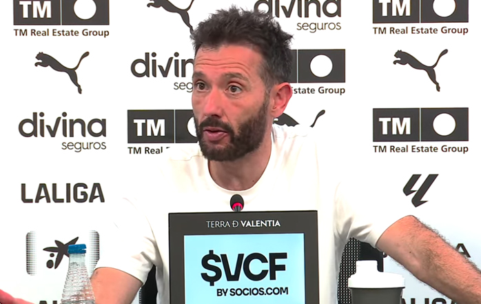 "Gracias. Sin ninguna duda, a partir del minuto 15 el equipo se ha desajustado. Santamaria empezaba a perder la posición del mediocampo, Javi Guerra empezaba a atacar de lateral, Foulquier empezaba a atacar de volante, Rioja parecía que era más un lateral y el equipo ha perdido posiciones que eran vitales para dominar el partido. En ataque hemos ido atacando cada vez peor, eso permitía contra el rival y luego en defensa cuando hemos ido a presionar nos han superado en duelos y cuando nos hemos puesto a defender en campo propio han encontrado una entre líneas y han cambiado la emoción del partido. Hoy no siento que ha sido debido a ningún ajuste del rival, hoy ha sido un desajuste del Valencia y no un ajuste del Oviedo. ¿Por qué? Bueno, habrá que ver cuál ha sido el desajuste y por qué no hemos entendido básicamente respetar las posiciones ofensivas que teníamos, simplemente eso. Muchas veces uno se puede confundir en el partido, uno puede sentir que es fácil y quiere hacer más cosas de las que tiene que hacer, o creo que es difícil generalizarlo y es necesario individualizarlo. ¿Por qué hemos perdido la posición en el mediocampo? ¿Por qué no hemos atacado los espacios que teníamos que atacar? ¿Por qué no hemos dado continuidad a la idea que también estaba funcionando los primeros minutos? Y hay que ver, no hay que ver, es el dolor de no haberlo aprovechado, el dolor de haberlo desajustado. Ahora no es una cuestión de decir que hay que analizar, hay que ver, lo que ha pasado está claro, lo que no podemos hacer es repetirlo si queremos ser un equipo más competitivo porque el dolor es enorme. Porque en un partido con la lluvia, siendo por la noche, cambiándolo por el martes, vienes aquí a Mestalla y hay más de 40.000 personas. Y eso nos jode una barbaridad. Y eso es doloroso. Y ante eso ya no es una cuestión de análisis táctico, es una cuestión de que tenemos que competir mejor, darle más continuidad, estar más organizados y encaminar y dirigir un partido como tenemos que hacerlo."