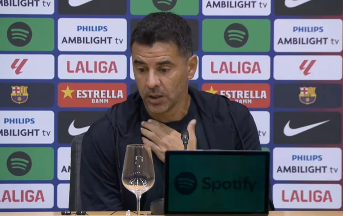 "Hola. No, cruel no. Es la realidad y ya está. Hemos hecho un muy buen partido, para mí. Hemos sido dominados por el Barça, que es normal, porque es muy difícil luchar con el centro del campo que tiene el Barça. Pero hemos hecho muchas cosas bien en defensa y en ataque también. Contento con el rendimiento, fastidiado por el resultado, pero tenemos que continuar. No me gusta el gol, porque cuando ha salido Araujo dijimos que intentáramos evitar los centros. No lo hicimos bien, porque se nos perdieron a Pedri por dentro... Hemos permitido más centros de lo normal. Ya está. Tenemos que continuar. Contento con el rendimiento. Espero que este partido nos dé energía y no nos quite nada."