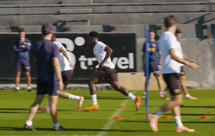 El técnico del conjunto che, Carlos Corberán, ha dirigido una sesión en la que Ugrinic, Ramazani, Foulquier y Diakhaby han continuado con sus respectivos procesos de recuperación. Durante el entrenamiento, el entrenador ha ensayado un esquema 5-3-2, valorando la posibilidad de que Almeida y Javi Guerra actúen por delante de Pepelu para potenciar el talento en el juego interior. El once trabajado ha estado formado por Agirrezabala; Rioja o Thierry, Comert, Tàrrega, Copete y Gayà; Pepelu, Javi Guerra y Almeida; Diego López o Beltrán y Danjuma. Una disposición táctica que busca equilibrio y fluidez para dominar desde la posesión y generar superioridades por dentro ante el conjunto verdiblanco.