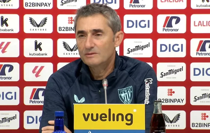 "Es un reconocimiento de la competición, sin más. El año pasado estábamos en la Europa League, íbamos progresando en la Europa League y en la Liga también íbamos progresando. Es verdad que los impulsos que tienes en una competición muchas veces te ayudan en la otra, entonces de lo que se trata siempre es de buscar el equilibrio en ir ganando en tus resultados y una continuidad en tus resultados, porque eso te beneficia en la competición que estés compitiendo. Pero no nos vamos a engañar, al final la secuencia y la regularidad que te da la Liga es exactamente lo que te dice dónde estás. Luego lo otro lo puedes competir, pero son competiciones que dependen de una chispa, de que un árbitro te expulse a un jugador, que nos pasó el año pasado, te quedas con diez en un partido decisivo y estás eliminado. El año pasado la propia dinámica de la Europa League también nos ayudaba en la Liga porque teníamos una secuencia positiva, y este año, sin embargo, nos está pasando al revés por determinadas circunstancias, entre otras cosas porque los rivales también son más fuertes. Lo que pasa es que eso, a la hora de analizarlo, no se analiza fríamente. Lo analizamos nosotros porque estamos aquí todos los días, pero desde fuera es normal esa pregunta. Pero en el fondo de lo que se trata es que nosotros estemos, si podemos, compitiendo por luchar y estar en Europa y, desde luego, hacer que las competiciones nos vayan ayudando para sobrellevar las otras, porque una dinámica negativa, cuando entras en Champions, equipos como nosotros, como el Villarreal, como el Girona el año pasado, es complicado tener dinámicas positivas ganando partidos, porque los rivales son complicados, porque ningún rival es fácil y todo eso te lleva a un pequeño desequilibrio, y eso la gente de fuera no lo entiende. De ahí viene un poco la pregunta. Pero cuando estás metido en esta dinámica, ya nos pasó hace diez años también con la Champions. Lo que pasa es que en la Champions tenías una salida para ir a la Europa League. En este caso, este año no hay esa salida."