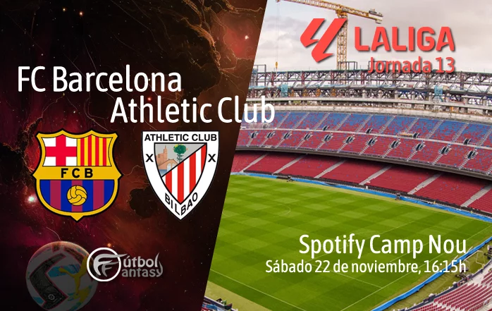 El Spotify Camp Nou abre nuevamente sus renovadas puertas para ser el escenario, este sábado 22 de noviembre a las 16:15 horas, del enfrentamiento entre el Barcelona y el Athletic Club, en un duelo correspondiente a la jornada 13 de LaLiga. El Barcelona, dirigido por Hansi Flick, ocupa la segunda posición en la tabla y llega con un balance de tres victorias y dos derrotas en sus últimos cinco partidos. Por su parte, el Athletic Club, bajo las órdenes de Ernesto Valverde, se sitúa octavo tras sumar dos victorias, dos derrotas y un empate en sus últimos encuentros.