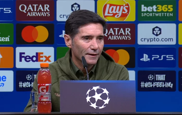 "Bueno, mira, estamos justo en mitad de esta competición de los partidos y vamos al quinto. El calendario también influye a la hora de sumar puntos. Siendo todos los equipos muy buenos y teniendo máxima dificultad para ganar cualquier partido de Champions, nosotros en el quinto partido habremos jugado contra tres campeones de Champions y el actual campeón de la Europa League. Esa es la realidad. Y competimos contra todos ellos. Y hemos metido una pifia, la que no queríamos meter, pero esto es fútbol. Y entonces juegas un partido fuera de casa en Champions. Se dan unas circunstancias X que a lo mejor o quizás nos confundieron. Bien, es pasado. Ahora nos toca ganar. Y nos toca ganar en esta competición. Poner todo para ganar. Antes lo decía, estamos súper orgullosos del rendimiento del equipo en todas las competiciones. En todas. Y aquí estamos en la mitad. Entonces ahora empezamos la segunda parte de esta competición de ocho partidos. Bueno, vamos a ver después de los ocho dónde estamos. A día de hoy tenemos fe absoluta en estar entre esos 24 primeros que nos da la posibilidad de seguir en la competición. Lucharemos mañana con todo nuestro orgullo, con toda nuestra ilusión, con toda nuestra ambición. Luego, si el rival te supera, le felicitaremos. Esperemos y deseamos no encontrarnos, como es lógico, en esa situación y que sí que nos feliciten ellos. Y a partir de aquí, pues pensaremos en la Liga. Y cuando tengamos otra vez que competir en casa contra Copenhague, a pensar en esta maravillosa competición. Es atractiva, emocionante. Y mañana a jugar en este escenario contra un gran rival con todas nuestras armas."