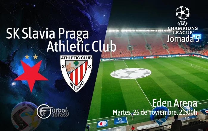 Este martes, 25 de noviembre a las 21:00h en el Eden Arena de Praga, se jugará la quinta jornada de la fase de liga de la UEFA Champions League 2025‑26 entre el Slavia Praga y el Athletic Club. Ambos equipos llegan con la necesidad imperiosa de sumar tres puntos para mantener viva su aspiración de avanzar en la competición. Slavia Praga sin victorias hasta el momento, ocupa una posición baja en la tabla con 2 puntos tras 2 empates y 2 derrotas, mientras que el Athletic Club tiene 3 puntos tras una victoria y 3 derrotas.
