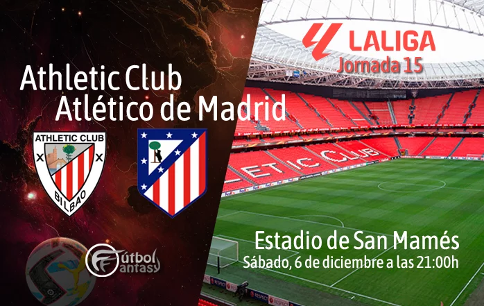 El Athletic Club y el Atlético de Madrid se enfrentarán este sábado 6 de diciembre a las 21:00 horas en San Mamés, en el partido correspondiente a la jornada 15 de LaLiga. Un duelo directo por los puestos europeos que llega marcado por las distintas dinámicas y las numerosas bajas en ambos conjuntos. En cuanto al rendimiento reciente, el Athletic Club, actualmente octavo, llega tras una racha irregular con tres derrotas y dos victorias en sus últimas cinco jornadas. El Atlético de Madrid, cuarto, aterriza en Bilbao con mejores sensaciones tras haber ganado cuatro de sus últimos cinco encuentros, aunque llega tocado anímicamente después de perder su último partido liguero, correspondiente a la jornada 19 adelantada, frente al FC Barcelona.