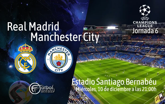 El Real Madrid recibirá al Manchester City este miércoles 10 de diciembre, a las 21:00 horas, en el estadio Santiago Bernabéu, en el partido correspondiente a la sexta jornada de la UEFA Champions League. Ambos equipos llegan con el objetivo de sumar para mejorar su situación en la clasificación europea y certificar su pase de ronda de forma directa, evitando los playoffs. El conjunto blanco presenta 4 victorias y 1 derrota en la competición, situándose en la 6ª posición, mientras que el Manchester City acumula 3 victorias, 1 empate y 1 derrota, lo que le coloca 10º en la clasificación. La victoria es necesaria si quieren lograr su objetivo.