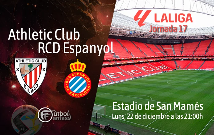 San Mamés pondrá el broche a la jornada 17 y al calendario futbolístico del 2025 con un duelo de altos vuelos entre Athletic Club y Espanyol. El encuentro se disputará este lunes 22 de diciembre de 2025, a partir de las 21:00 horas, con los bilbaínos ocupando la séptima posición de la clasificación y el conjunto perico, dirigido por Manolo González, instalado en un meritorio quinto puesto. Ambos equipos llegan en un buen momento de forma: los de Ernesto Valverde suman tres victorias y dos derrotas en sus últimos cinco compromisos, con la satisfacción de pasar a los octavos de final de la Copa del Rey, mientras que el Espanyol encadena cuatro triunfos y una sola derrota.