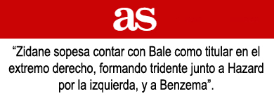Según informa el periodista Manu de Juan este viernes por la tarde en Diario As, Zidane sopesa contar con Gareth Bale como titular en el extremo derecho del once frente al Eibar, formando tridente de ataque junto a Hazard, por la izquierda, y a Benzema, en punta.