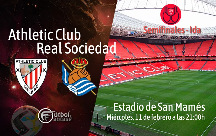 El Athletic Club y la Real Sociedad se medirán este miércoles 11 de febrero de 2026, a partir de las 21:00 horas, en San Mamés, en el partido de ida de las semifinales de la Copa del Rey. El derbi vasco vuelve a escena en una eliminatoria de máxima rivalidad e intensidad, con un billete para la final en juego. El equipo de Ernesto Valverde buscará hacerse fuerte en casa tras el triunfo en Liga de la última jornada, que les inyecta motivación extra para afrontar la cita, mientras que la Real Sociedad intentará encarrilar la eliminatoria haciendo valer su buena dinámica liguera.