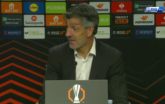 El entrenador de la Real Sociedad, Imanol Alguacil, ha atendido a los medios de comunicación este jueves por la noche, durante la rueda de prensa posterior al partido contra el PAOK, correspondiente a la jornada 8 de la UEFA Europa League, que se disputó en el Reale Arena.