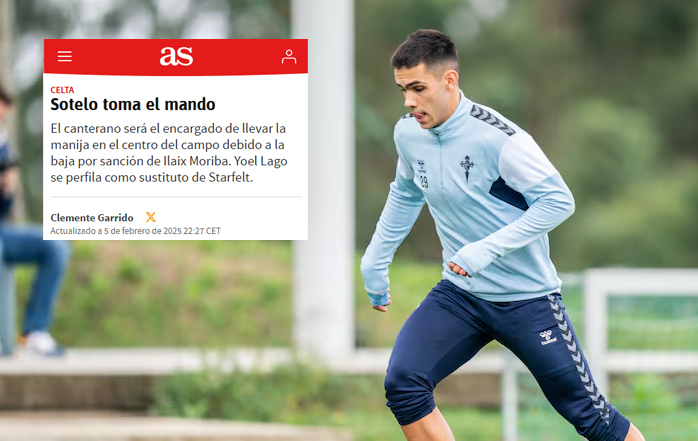 El periodista Clemente Garrido, de Diario AS, da por hecho que Hugo Sotelo y Yoel Lago serán titulares en el partido de este fin de semana que enfrentará al Celta con el Betis. La sanción de Ilaix Moriba deja a Sotelo como el encargado de la construcción del juego celeste, según el periodista, por delante de Damián. El canterano, con su capacidad para asociarse y filtrar pases, puede aportar mayor fluidez en la circulación del balón, aunque el equipo perderá físico sin Ilaix.