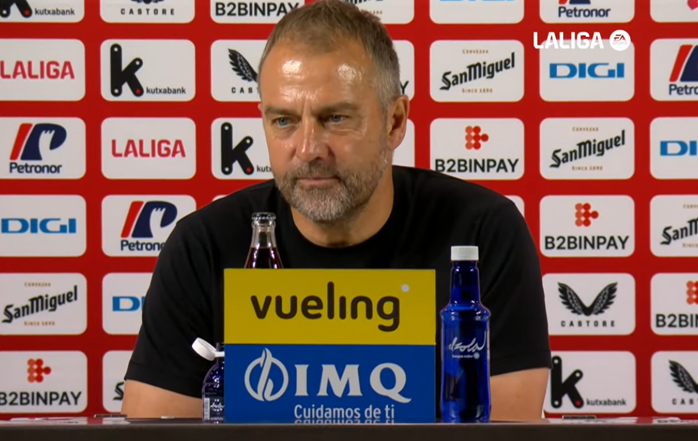 El entrenador del FC Barcelona, Hansi Flick, ha atendido a los medios de comunicación este domingo por la noche, durante la rueda de prensa posterior al partido contra el Athletic Club, correspondiente a la jornada 38 de Liga, que se disputó en el Estadio de San Mamés.