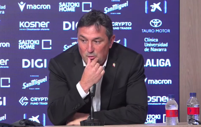 "Enzo, si lo veis en el día a día, es un feliciano de la vida. Es un poco Moncayola. Ellos dos van un poco... son felices en su día a día y bueno, yo pienso que Enzo lo que tiene que hacer es... hay que estarle encima, hay que apretarle, como está Sergio, que se desgañita, y uno de los que más le grita es a Enzo porque se despista. Tiene unas facultades absolutamente tremendas, pero nosotros... el año pasado, cuando pagamos 5 millones de euros por él, los únicos que fuimos de verdad fuimos nosotros. Y bueno, pues el que quiera, que si viene algún equipo, que pague los 25 millones, ya está. Nosotros no podemos hacer... pero no lo veo yo... lo veis en el día a día, no es un postureo, él está súper a gusto, pero que deje de estar un poco a gusto porque hay que apretarle de vez en cuando porque es un poco relajado, vamos a dejarlo así. Nosotros no negociamos ni escuchamos ninguna oferta por Enzo. Ya saben la cláusula y el que quiera... acabamos de hacer una transferencia importante. A nivel económico estamos bien, pero me preocupa sobre todo más a nivel deportivo. Vi el otro día un artículo que en los últimos cinco o seis años somos el equipo que menos invierte en fichajes. Nosotros no necesitamos vender. Tenemos la suerte, para mí reforzarnos es que Sergio Herrera, por ejemplo, esté con nosotros muchos años, Lucas, Rubén, etcétera. Otros equipos van cambiando 12, 14 jugadores cada año, nosotros otra vez seremos probablemente el equipo que menos fiche de Primera División."