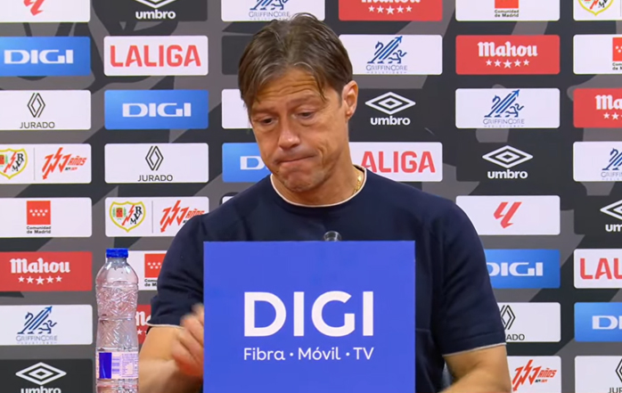 "Yo si fuese... No, soy entrenador de Sevilla, no me puedo poner en el lugar de otro entrenador. Me pondría en el lugar de un presidente. Tiene un técnico espectacular. Espectacular, porque nosotros nos rompimos la cabeza para ganar este partido. Y nos llevó mucho tiempo y tiene muchísimas cosas buenas el Rayo. Muchas, que si analizan y estudian fútbol, se las inculca ese entrenador. Entonces los resultados, todos luchamos por resultados. Tiene un buen jugador y tiene un gran entrenador. Y lo respeto y le deseo lo mejor, la verdad. Gracias."
