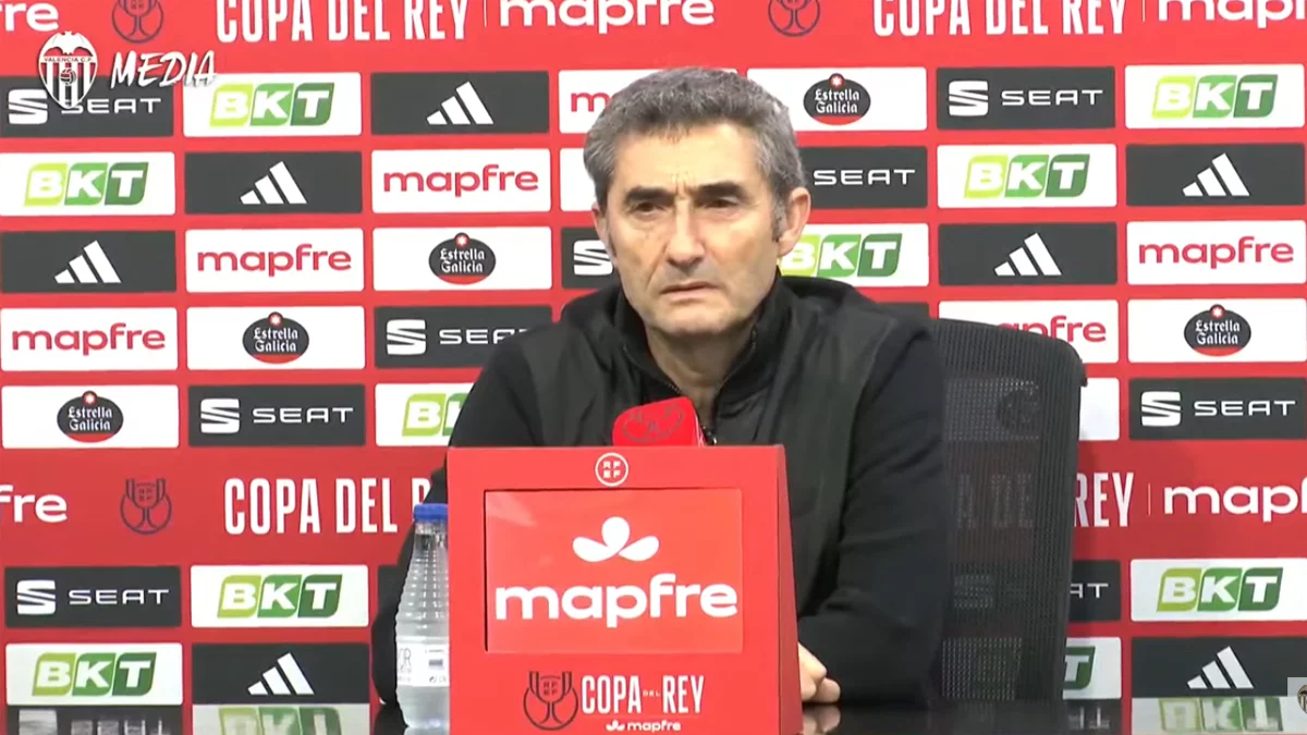El entrenador del Athletic Club, Ernesto Valverde, ha atendido a los medios de comunicación este miércoles por la noche, en la rueda de prensa posterior al partido contra el Valencia CF, correspondiente a los cuartos de final de la Copa del Rey, que se disputó en el Estadi de Mestalla.