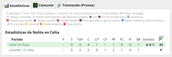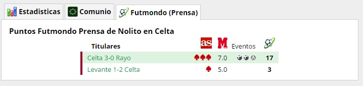 - La tercera hace lo propio con los datos de Futmondo/Prensa, incluyendo la nota de marca.