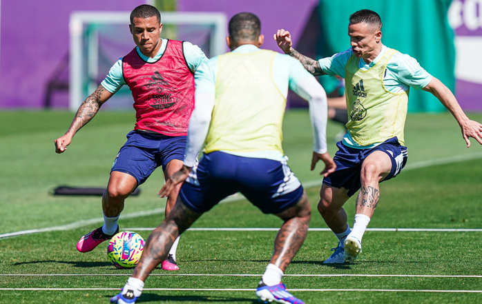 La primera plantilla del Real Valladolid se ejercitó este lunes por la tarde tras la importantísima victoria cosechada en Villarreal y ya con el duelo liguero ante el Girona FC en el horizonte. Los titulares ante los castellonenses protagonizaron una sesión de recuperación, mientras que el resto trabajó con la intensidad habitual.