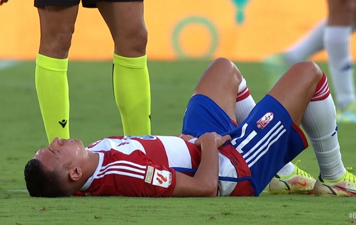 El delantero albanés del Granada CF, Myrto Uzuni, tuvo que pedir el cambio en el minuto 38 del encuentro de este jueves por la tarde en el Estadio Nuevo los Cármenes, contra el Betis, debido a unas molestias producidas tras una entrada de un jugador del Betis. El futbolista intentó continuar, pero el dolor le impedía correr con normalidad, motivo por el cual terminó tirándose al suelo y pedir las asistencias. Tras varios segundo siendo atndido, terminó siendo sustituido por Bryan Zaragoza.