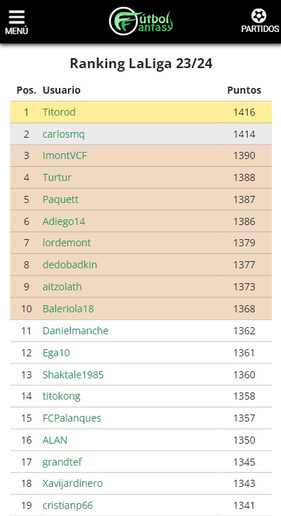 Fantasy RPG: ¡carlosmq gana la jornada 10 de LaLiga y Titorod se coloca líder!