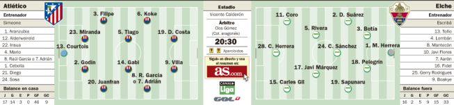 El Atlético de Madrid se olvida del Chelsea y no rota esta noche (20:30 C+ Liga / GolT) ante el Elche. Cuentas: si gana cuatro de los cinco partidos que quedan, será el campeón.
