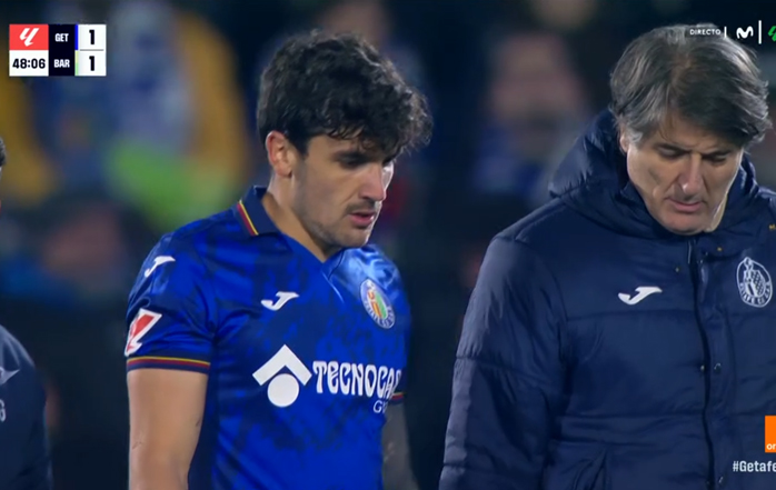 El mediocentro azulón del Getafe, Mauro Arambarri, se ha visto obligado a pedir el cambio en le minuto 49 del encuentro de este sábado por la noche en el Coliseum, contra el FC Barcelona, correspondiente a la jornada 20 de liga. El autor del primer tanto del conjunto getafense notó unas molestias musculares en la parte posterior del muslo al intentar rematar un balón en le área de Iñaki Peña. Tras ser atendido por los servicios médicos, tuvo que ser sustituido finalmente por Yellu.