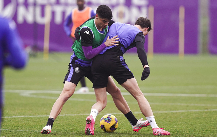 El primer equipo del Real Valladolid se ejercitó este lunes en los Anexos al Estadio José Zorrilla para comenzar a preparar el importante compromiso liguero de este sábado ante el Real Madrid. La sesión se desarrolló bajo la lluvia y se alargó durante más de noventa minutos sobre el césped, con continuación posteriormente en el gimnasio.