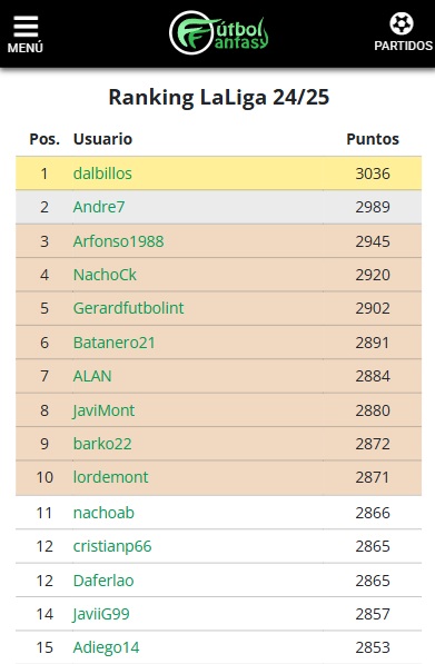 En cuanto al liderato del ranking general, se mantiene primero dalbillos, con un total de 3036 puntos, muy seguido de Andre7 y Arfonso1988. ¡Sigue la lucha por conseguir una PS5!