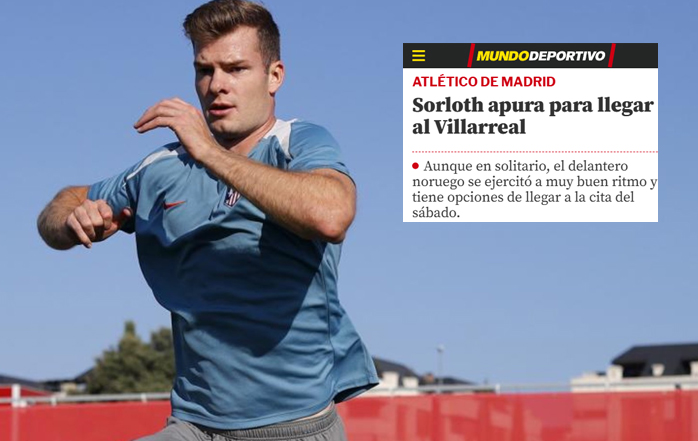 Buena noticia para Simeone: Alexander Sorloth se ejercitó a buen ritmo en solitario este jueves en Majadahonda y según Mundo Deportivo aumentan sus opciones de jugar contra el Villarreal este sábado. Aunque no se ha unido al grupo, el noruego, con botas de fútbol, mostró buenas sensaciones en cambios de ritmo y golpeos de balón.