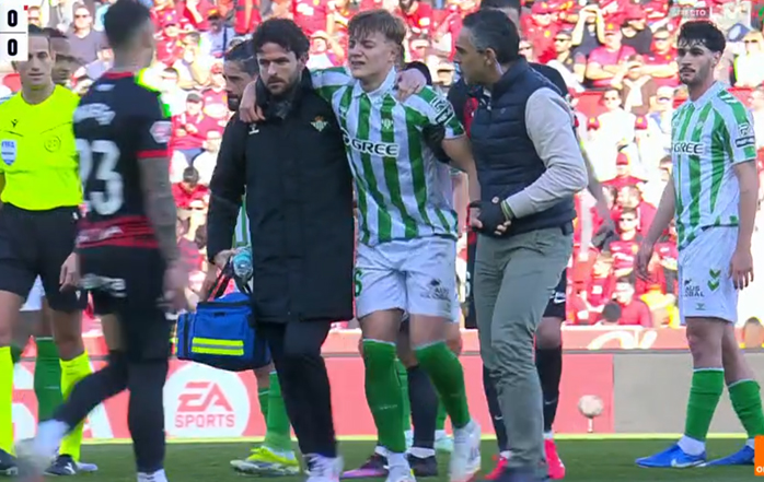 El extremo canterano del Real Betis, Jesús Rodríguez, que hoy disfrutaba de otra titularidad en el Estadi Mallorca Son Moix, durante el partido de la jornada 21 de Liga contra el Mallorca, se vio obilgado a pedir el cambio en el minuto 73 del encuentro debido a una entrada de Omar Mascarell. El mediocentro hispano-ecuatoguineano del equipo bermellón entró a por el balón a ras de suelo, impactando sus botas en la espinilla de Jesús, lo que le provocó mucho dolor. Tras ser atendido por los Servicios Medicos, tuvo que ser sustituido por Pablo García.