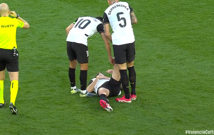 El mediocentro del Valencia, Javi Guerra, autor de uno de los tantos del equipo este domingo por la tarde en Mestalla, durante el partido de la jornada 22 contra el Celta, se ha visto obligado a pedir el cambio en el minuto 81 del encuentro, debido a unos calambres en el gemelo, que provocaron que sus compañeros le ayudaran a estirar la planta del pie. El futbolista, visiblemente cansado, dejo su sitio a Pepelu para jugar los últimos diez minutos del partido.