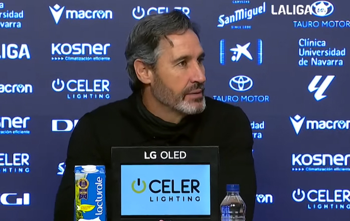 "Al final, una vez estás en las áreas, otra vez es lo que pasa de área a área. Como siempre digo, en ese equilibrio, si te sale positivo, como ha sido el caso hoy, está bien. Quizá, siempre siendo autocrítico, nos ha sobrado el hecho de que no nos marcaran ese último gol. Tienes esa sensación de no dejar la portería a cero, y eso realmente no me ha gustado. Sabéis que no me gusta personalizar, pero creo que con Budi hay que hacerlo. Estamos hablando de un jugador que está haciendo historia en Osasuna, y él va a lo suyo, sigue haciéndolo. Además, uno ve que no va a parar. Decíamos antes del partido, en la previa, que solo hay que ver cómo trabaja cada día, cómo se prepara, y luego pueden pasar rachas, porque esto es fútbol, esto es la vida, y a veces hay rachas en las que, como nos ha pasado a nosotros, no se mete algún gol, pero es un jugador que al final se lo gana, y a nosotros nos viene muy bien que él meta goles y que sus compañeros le ayuden a hacerlos".
