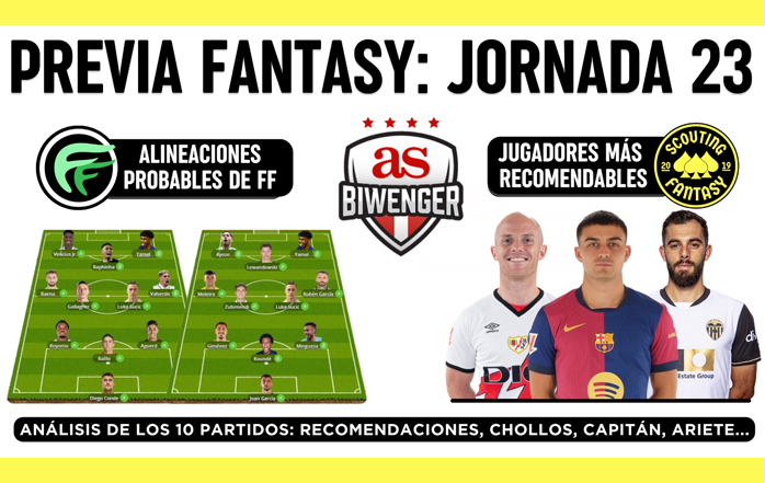Análisis fantasy de la jornada 23: Alineaciones probables, y recomendaciones, por Scouting Biwenger
