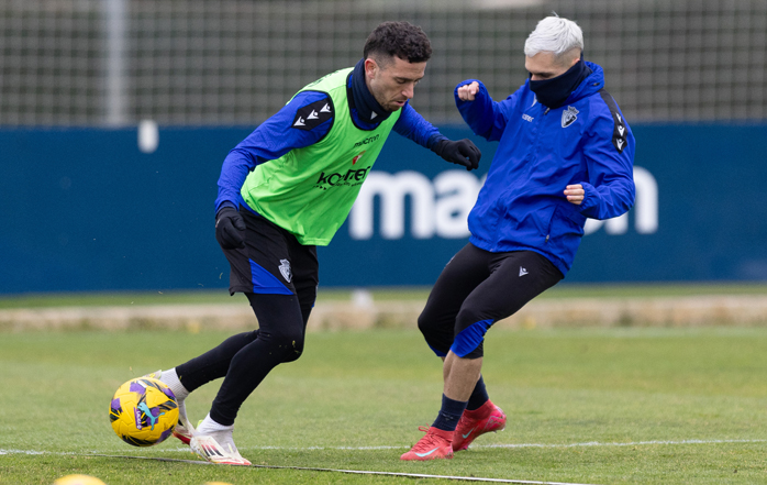 Raúl García de Haro ha realizado trabajo individual por un golpe recibido en el tobillo de su pierna derecha en el entrenamiento del día anterior. En la sesión ha participado el portero del Subiza Rafa Fernández.