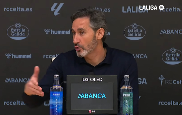 "Cuando hemos cambiado a sistema de cuatro, hemos estado bien. Hemos metido al Celta en su campo… Es verdad que el resultado influye. Un equipo tiene algo que defender, y muchas veces parece que el propio entrenador toma la decisión de adelantar o retrasar el bloque, pero también entra en juego la inercia de tener un resultado favorable o negativo. Hemos hecho este ajuste porque, tras analizarlo, consideramos que encajaba mejor, primero por los jugadores que teníamos disponibles y, después, porque había un rival que también condicionaba. Creo que en la primera parte se ha visto el motivo de este cambio y cómo conseguimos desactivar y superar al Celta. En la segunda parte, ellos hicieron un ajuste. Prácticamente con los mismos jugadores, cambiaron su salida de balón, pasando a una línea de cuatro defensores con dos extremos abiertos en vez de jugar por dentro, y ahí tuvimos más dificultades. Esto es lo que ocurre muchas veces cuando hay cambios en el plan de partido, en el esquema o en los posicionamientos; hay que ir encontrando soluciones. Creo que, con el tiempo de trabajo que vamos acumulando, ampliamos el abanico de posibilidades. Como suelo decir, se trata de dotar al jugador de una mayor cultura táctica para que pueda sentirse cómodo en cualquier esquema, situación o escenario que requiera el partido".