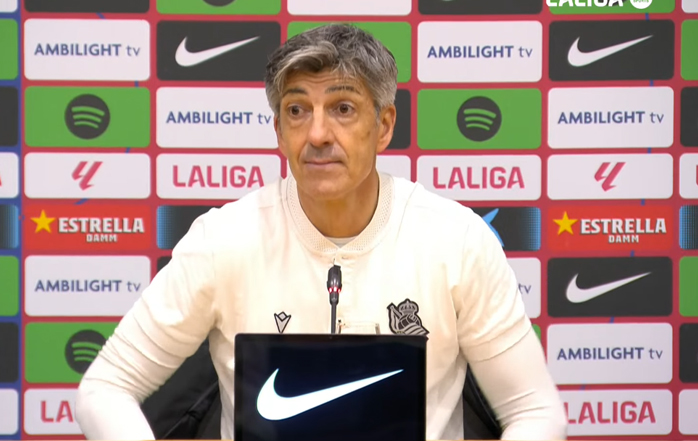 El entrenador de la Real Sociedad, Imanol Alguacil, ha atendido a los medios de comunicación este domingo por la tarde, durante la rueda de prensa posterior al partido contra el FC Barcelona, correspondiente a la jornada 26 de Liga, que se disputó en el Estadi Olímpic de Montjuic.