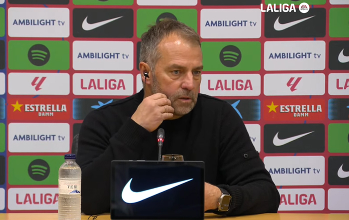 El entrenador del FC Barcelona, Hansi Flick, ha atendido a los medios de comunicación este domingo por la tarde, durante la rueda de prensa posterior al partido contra la Real Sociedad, correspondiente a la jornada 26 de Liga, que se disputó en el Estadi Olímpic Lluis Companys.
