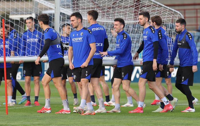 El técnico del conjunto rojillo, Vicente Moreno, ha dirigido una sesión en la que ha ensayado con Boyomo, Catena y Herrando como centrales, repitiendo el esquema utilizado en Vigo. En los laterales, ha trabajado con Areso y Juan Cruz en un equipo, mientras que en el otro ha colocado a Peña y Bretones como carrileros. La sesión dejó una posible mala noticia: Juan Cruz tuvo que retirarse acompañado por el médico tras sentir molestias en la parte posterior del muslo derecho, quedando en duda para el partido ante el Barcelona, a la espera de pruebas médicas. Aimar Oroz completa la enfermería.